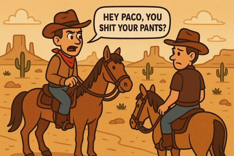 He then says “Paco, get of your horse, pull down your pants. I thought you said you did not shit your pants?”