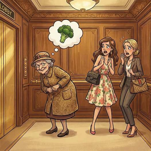 When the elevator reached her floor, the elderly woman turned to them with a calm expression. Before stepping out, she let out a loud fart and said, “Broccoli — 49 cents a pound.” The doors closed as the younger women stood speechless, reminded that confidence doesn’t always come with a price tag.