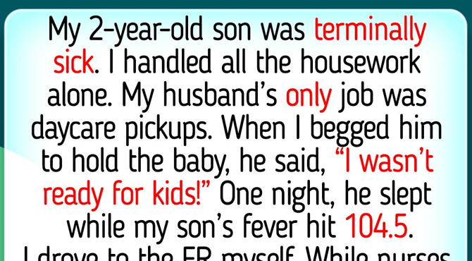 One night, the fever spiked to 104.5. My son was shaking, and I was panicking, looking at my husband who was literally snoring. Desperate and feeling that superhuman strength kick in, I didn’t scream or beg this time. I realized that waiting for a “lazy” partner to step up was actually putting my son at risk. I drove to the ER myself!