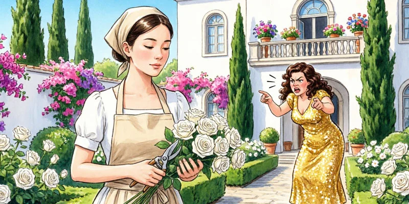 Misty’s voice cut through the air above the white rosebushes before I even had a chance to look up from my work. Her expensive heels sank deep into the damp soil of my father’s garden as if she were strutting down a runway instead of treading on the ground where he had spent half his life.