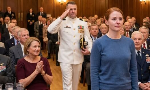 I Came Home to Sit Quietly in the Back Row of My Father’s Veterans’ Ceremony While My Stepmother Smirked, “She Already Left the Navy”—Then a Man in Dress Whites Walked Into That Packed Hall, Ignored the Stage, and Started Walking Straight Toward Me